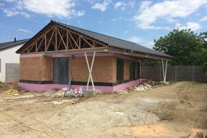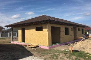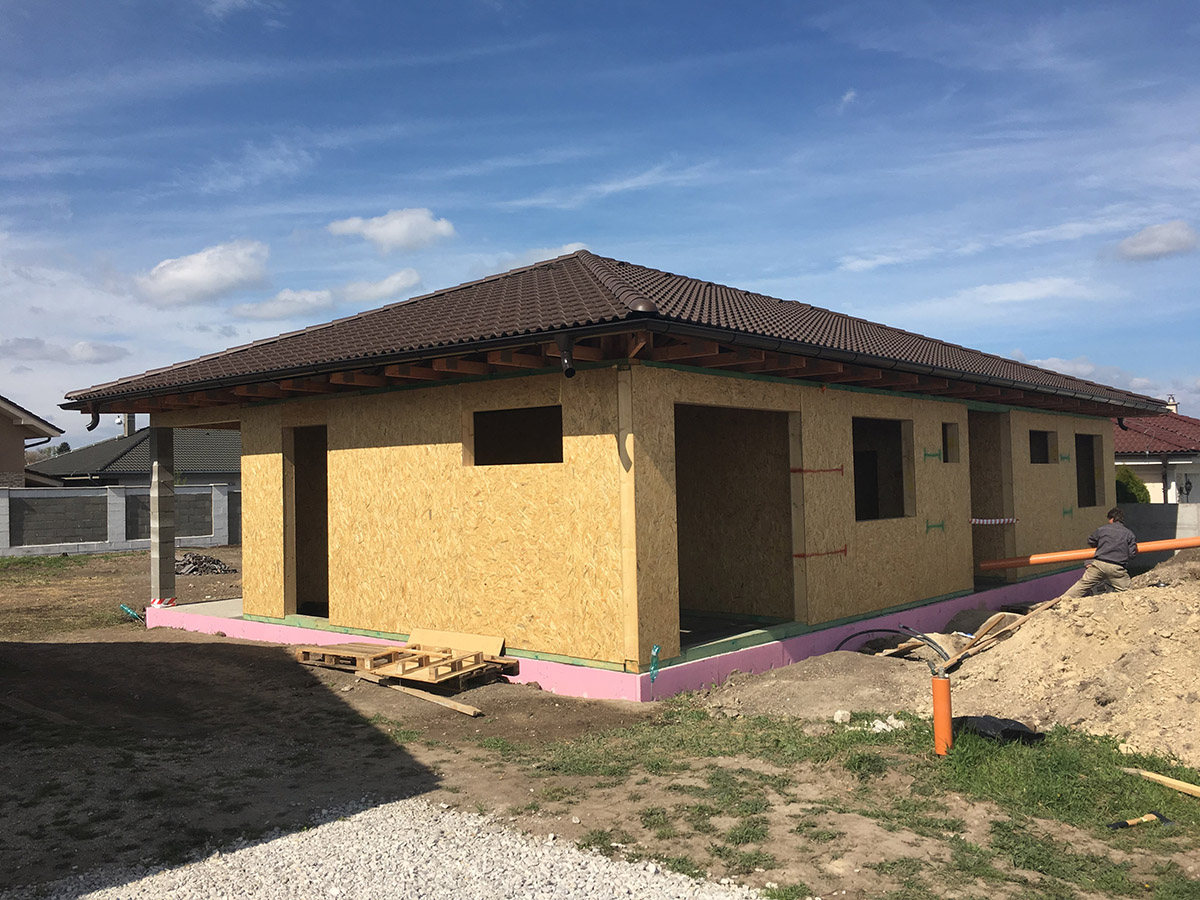A tetőszerkezet tetőfedő anyaggal való befedése után következik a tetőtúlnyúlás vagy eresztúlnyúlás befejezése, vagy zsaluzása. Ez a zsaluzás a legtöbb esetben OSB lapok alkalmazásával történik, illetve egyszerű kiegészítő tetőlécek rendszerének alkalmazásával. Figyelembe kell venni, hogy maga a rácsos tetőszerkezet a technológiája és alakzata szempontjából viszonylag pontos szerkezet, mivel a rácsos tartó pontos statikai terv alapján kerül gyártásra préselt tüskék és kapcsoló lemezek összepréselésével a présasztalon prés nyomása által. Amennyiben az épületen eltérés keletkezik, főként, ami a tetősík pontosságát illeti a felszerelt rácsos tetőszerkezet esetén, az esetek 95%-ban megállapítható, hogy ezt az eltérést nem maga a rácstartó, hanem a vasbeton koszorú egyenetlensége okozta, amelyre a WOLF rácstartót horgonyozták, tehát az építési előkészületek szintjén keletkezett hiba okozta. Számos cég szereli a szerkezetet talpszelemen nélkül, közvetlenül a vasbetonra, esetleg közvetlenül a rácstartó alá egy „darab“ bármilyen vízszigetelést alkalmazva, ami bár biztosítja azt, hogy a fa nem kerül közvetlen kapcsolatba a vasbetonnal, viszont egyben magas nedvesség mellett megtörténhet, hogy a nem kívánt nedvesség eléri a rácstartót, ami további statikai problémákat okozhat. Az így megvalósított szerelés, tehát amikor a szerelés közvetlenül a koszorúra történik, egyedüli előnye a kb. 150 euróval alacsonyabb beszerzési ár az ügyfél számára, ami viszont többszörösére emelkedik a számára a tetőfedés és a tető túlnyúlás zsaluzásának megvalósításánál. A talpszelemenre történő szerelés esetén, úgy, ahogy ezt kizárólag a cégünk valósítja meg, egyben biztosítjuk azt is, hogy a vasbeton koszorú kisebb egyenlőtlensége esetén (kb. 2 cm-ig) a tetősík a lehető legegyenletesebben lesz előkészítve a tetőfedéshez, és a tetőfedő anyag szerelése egyszerűbb, pontosabb lesz, valamint a tető végleges vizuális arculata is kiválóan lesz megvalósítva. Az egyenlőtlen koszorú problémája a rácsos tetőszerkezet szerelése előtt a tető, eresz túlnyúlásának alakjában nyilvánul meg teljes mértékben. Ezért a zsaluzat síkjának lehető legtökéletesebb elérése érdekében kiegészítő tetőlécek rendszerét alkalmazzuk, amelyek segítenek az eresz kiegyenlítésében, azaz az OSB lap horgonyzása nem közvetlenül a rácstartó alsó övére történik. Ebből ered, hogy amennyiben nem biztosított a vasbeton koszorú pontos síkja, nem lesz sík a tetősík sem, illetve a tető vagy eresz túlnyúlás síkja sem. Ezt a „görbe koszorú“ nem minőségi építési előkészülete által okozott hiányosságot teljes mértékben vagy részlegesen javíthatjuk ki azzal, hogy a rácstartót a talpszelemenhez horgonyozzuk. Viszont ebben az esetben is választani kell, hol kívánjuk betartani a lehető legmagasabb szintű pontosságot. Vajon ez, logikusan, a tetősíknál legyen az utána következő tetőfedés érdekében, vagy a tető/eresz túlnyúlás síkjában legyen.